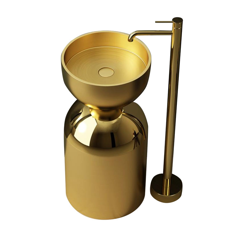 বাথরুম স্যানিটারি ওয়ারেস 304 ফ্লোর টেপার্ড ফ্রি স্ট্যান্ডিং বেসিন ওয়াশ হ্যান্ড চকচকে পেডেস্টাল বেসিন |
